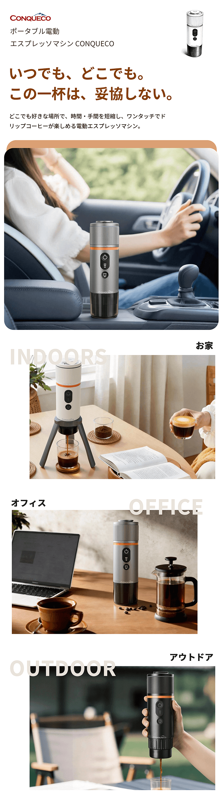 ポータブル電動エスプレッソマシン CONQUECO