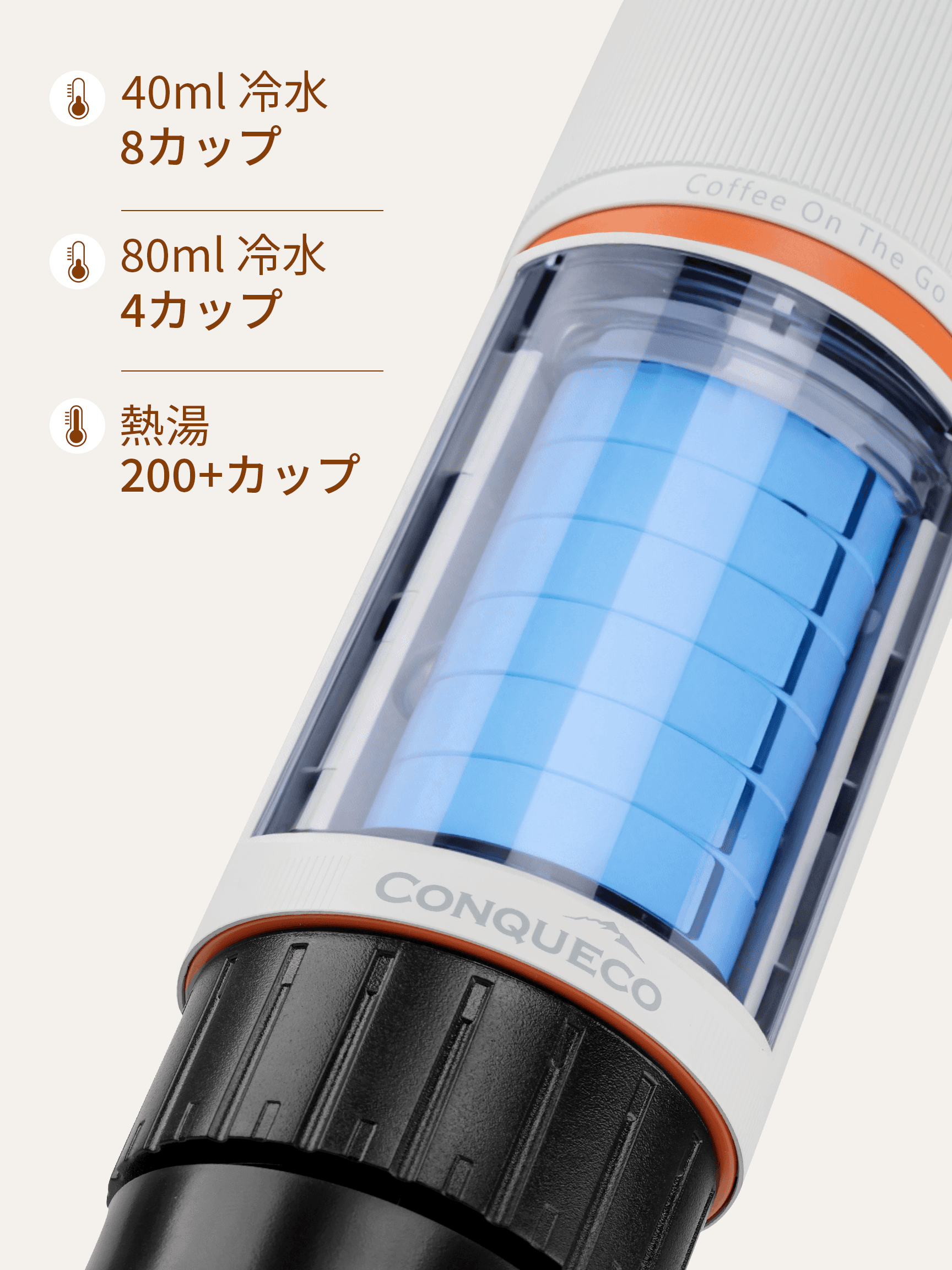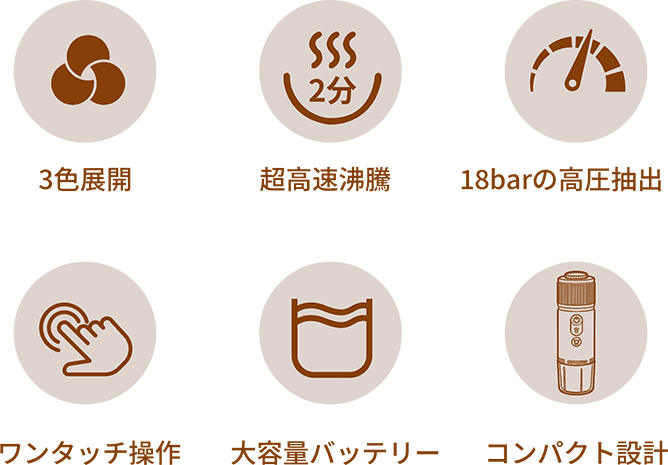 CONQUECOは最大20気圧という圧倒的な圧力を実現。だからこそ、きめ細やかなクレマと濃厚な味わいを、 外でも、自宅でも、いつでも楽しむことができます。